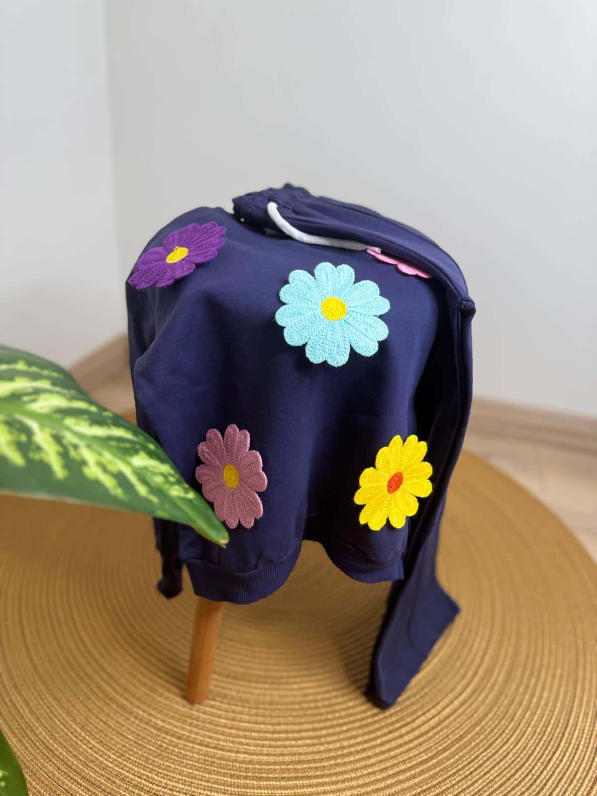 Çiçek Nakış İşlemeli İspanyol Paça Eşofman Takımı