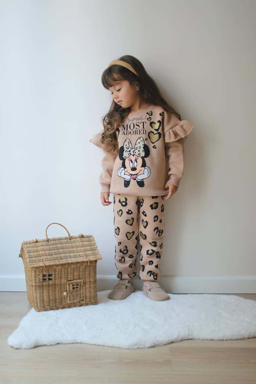 Kol Fırfır Detaylı Simli Minnie Mouse Baskılı Eşofman Takımı GK-3035